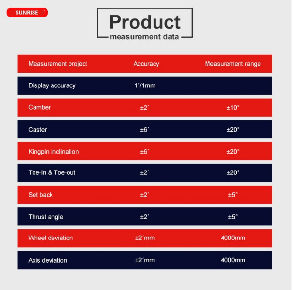 Product Description: Parameters measurement such as camber, Caster, Kingpin inclination, Toe-in..... View more details