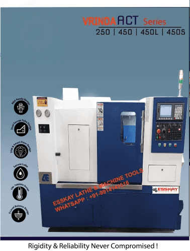 Product Description: ESSKAY BRAND SLANT BED CNC LATHE MACHINE VRINDA ACT450 Esskay Brand..... View more details