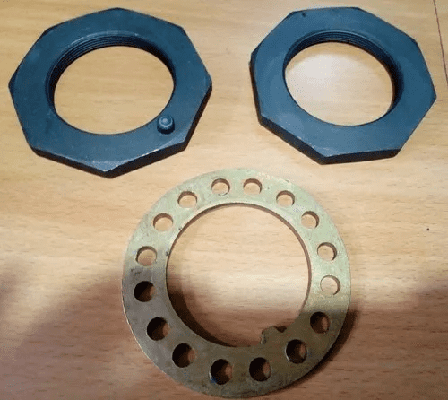 Differential slotted nuts are to apply a preload to the differential cage bearings on both sides of the assembly. This preload is critical for maintaining the crown wheel's precise position during vehicle operation.