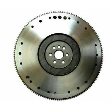 Flywheels are typically made from materials that can withstand high stress load, such as cast iron or steel. The increased mass allows for greater energy storage capacity. The shape of the flywheel is circular in shape, and it is mounted on the engine's crankshaft.
