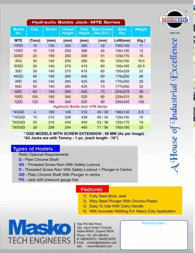 Product Description: Hydraulic Bottle Jacks with Integral hand Pump for Industrial &..... View more details